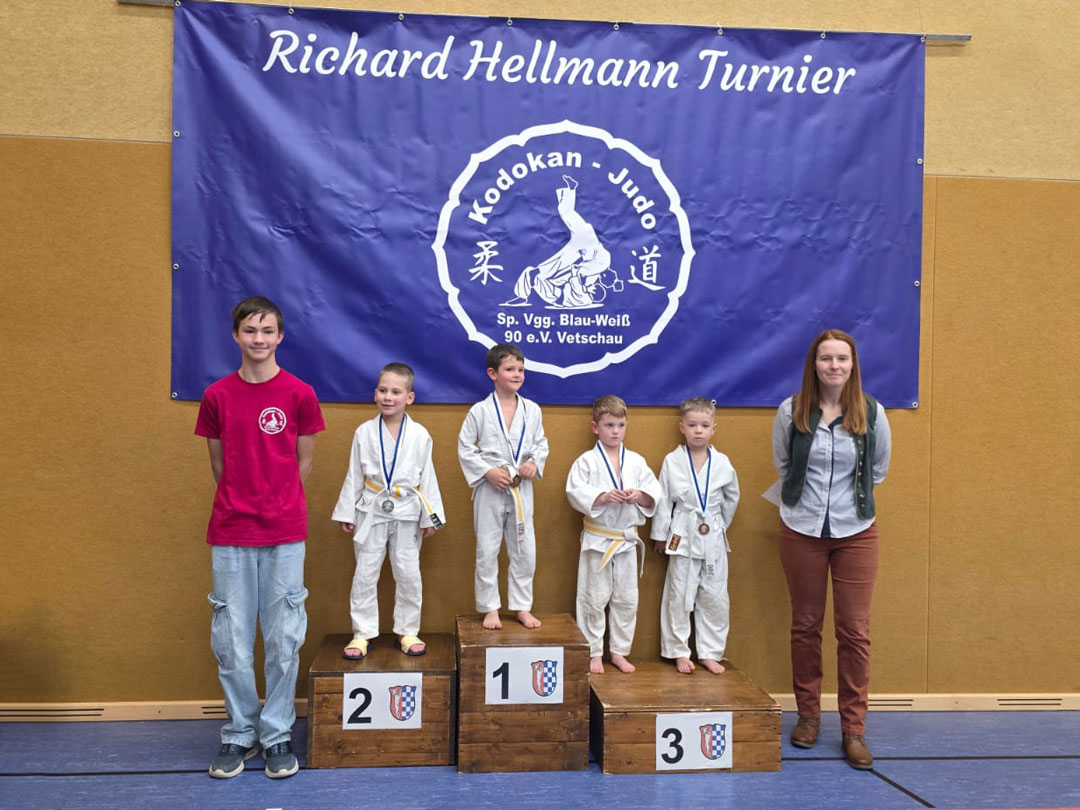 Am Sonntag gingen die Jüngsten auf die Vetschauer Wettkampftatami. Ein schönes Team aus 8 Minis kämpfte in der U7 um die schönen Medaillen. Platz 1 erkämpften John und Vladimir. Die Silbermedaille konnte Sophia Rex für sich erkämpfen. Samuel Schmidt, Finn, James, Karol und Jonte erkämpften die Bronzemedaille.